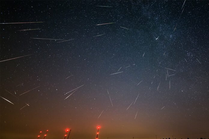 Perseid meteor shower lights up the sky.